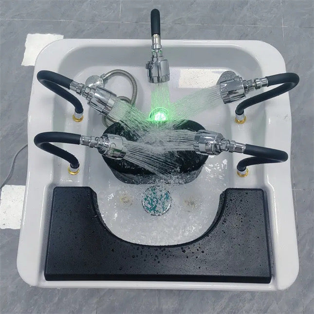 Experience the ultimate in luxury and wellness with the Pressur Point 6-Head Water Circulation Head Spa Plumbed Sink, designed for professional head spa services and personal care. This revolutionary product integrates cutting-edge features for a complete relaxation and rejuvenation experience.