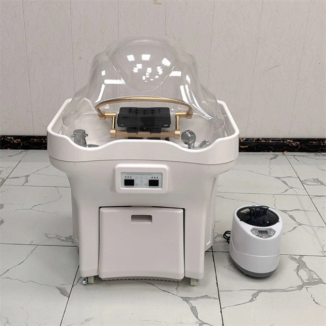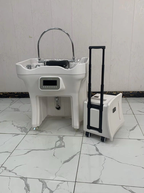Introducing the Non-Plumbed Head Spa, the ultimate solution for luxury hair care. This upgraded model features a 50-liter clean water tank, 3000w built-in instant water heater, and a 25-liter internal waste water tank, designed for maximum efficiency and convenience. With its English control panel and embedded water heater, this unit offers professional-grade performance for spas, salons, and at-home use—all without the need for plumbing.